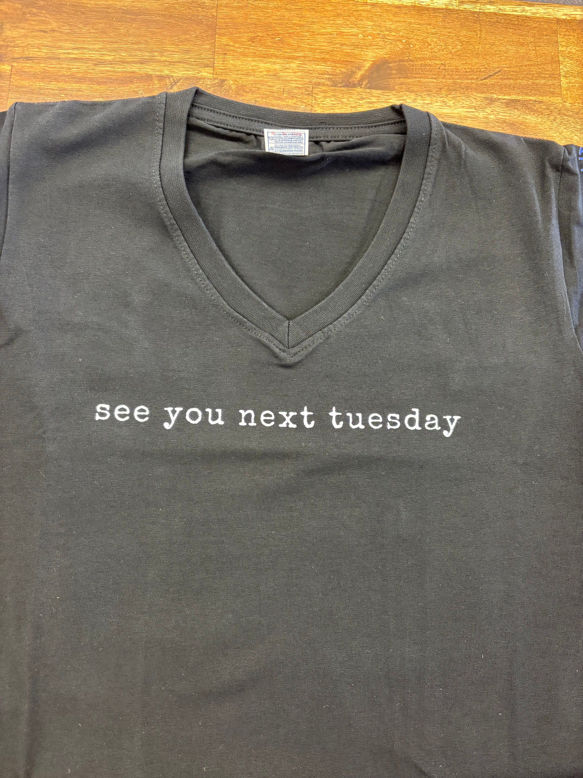 see you next tuesday T-Shirt, Black women’s fitted V-neck size Small