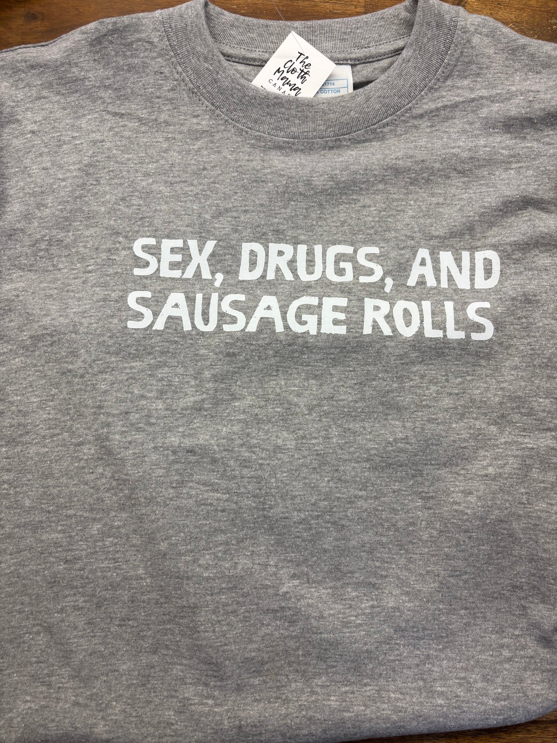 Sex Drugs & Sausage Rolls Grey T-Shirt size Medium